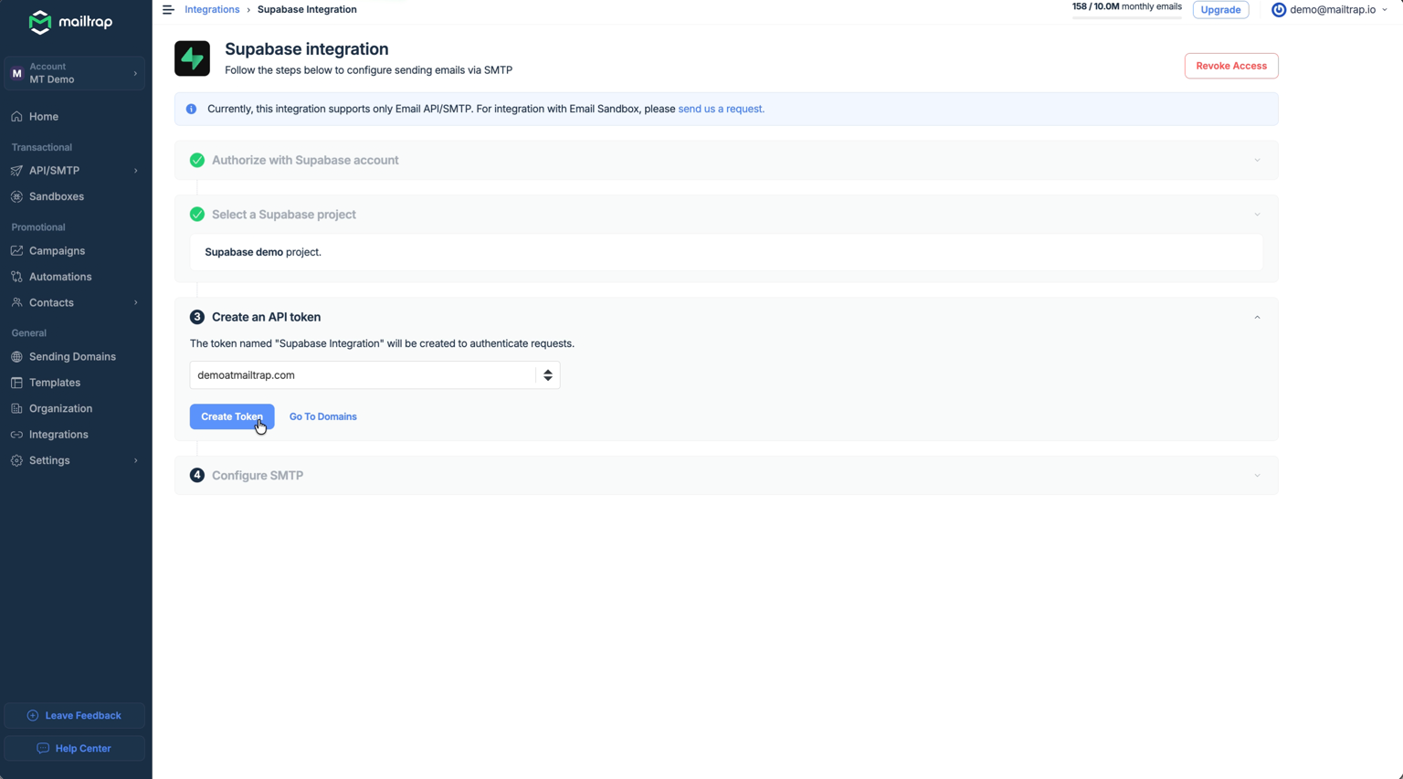 Supabase Mailtrap SMTP integration
