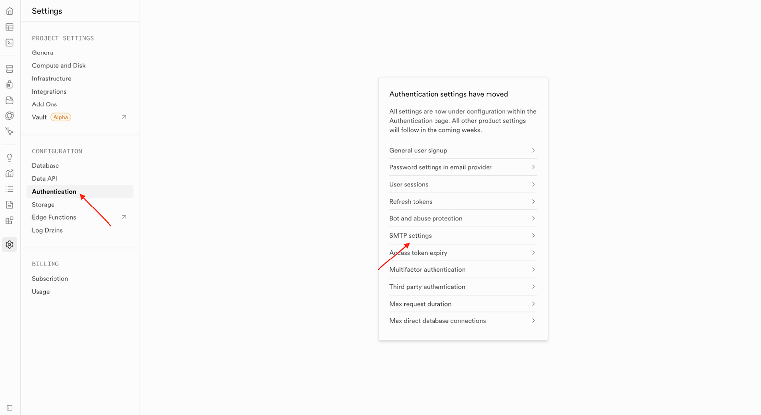 Step 2. Update the SMTP server in Supabase