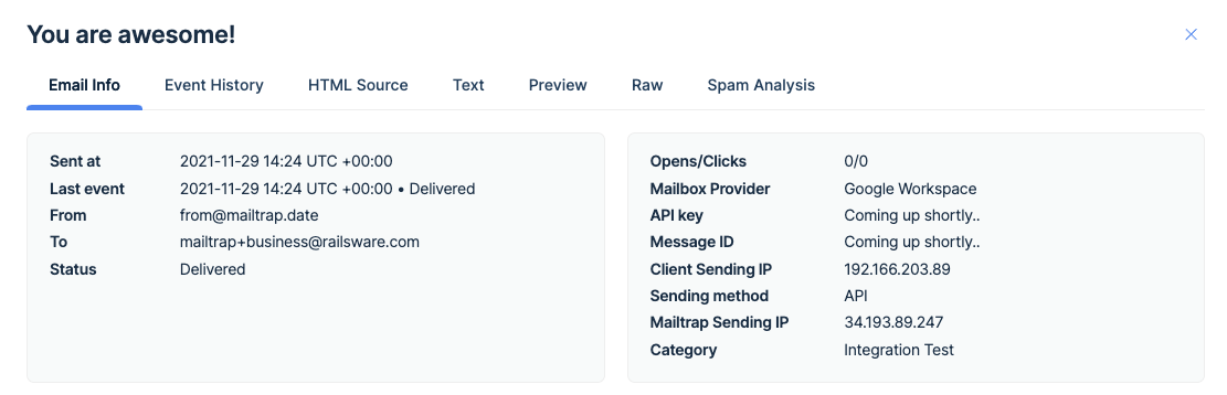 For more information on Mailtrap Analytics, click here.