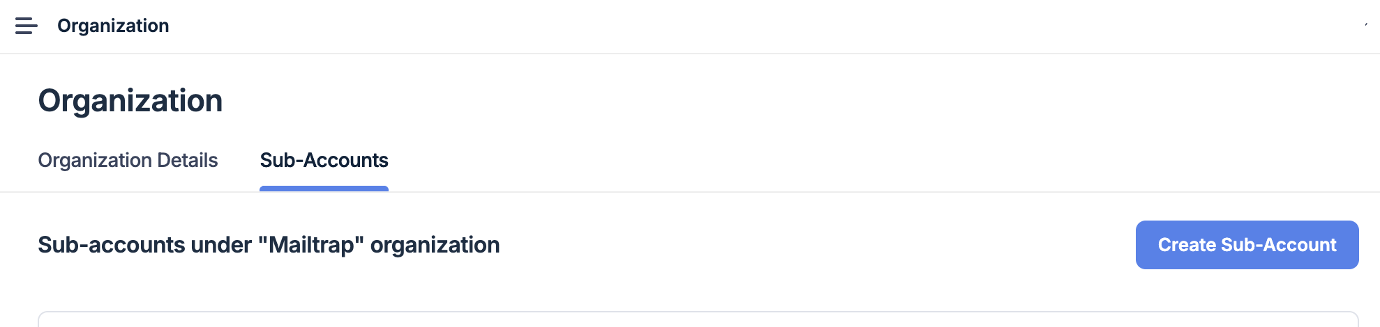 Note: A user with organization-level permissions will always have access to all organization-related pages in the Mailtrap UI, regardless of which sub‑account they are currently logged into.