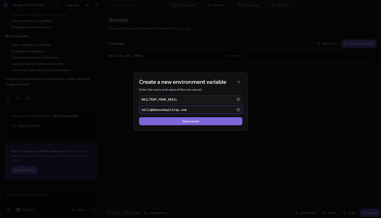 Step-by-step guide on how to integrate Mailtrap with your Reflex Build application.